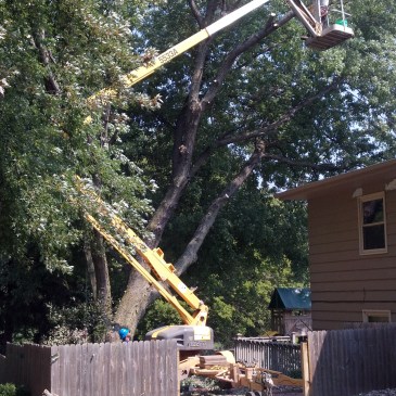 Removing these two diseased trees in a tight space became a priority to enable the completion of a local landscaping project.