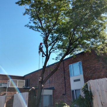 This project in 2018 was one of our more interesting jobs. The 60′ locust tree located in the greenspace at the center of the Okoboji Elementary School required the skill of a tree climber. Each piece then had to be carefully carried into the hallway then out the front doors. We also removed a diseased … More 60′ Locust Tree “Inside” Okoboji Elementary School Comes Out Through the Front Doors